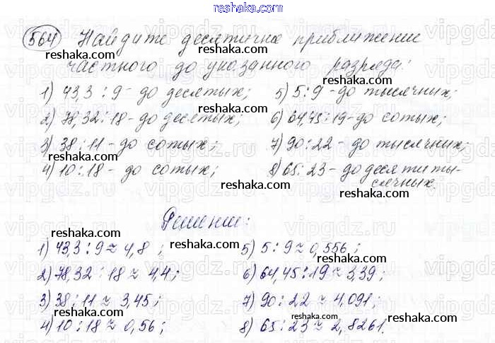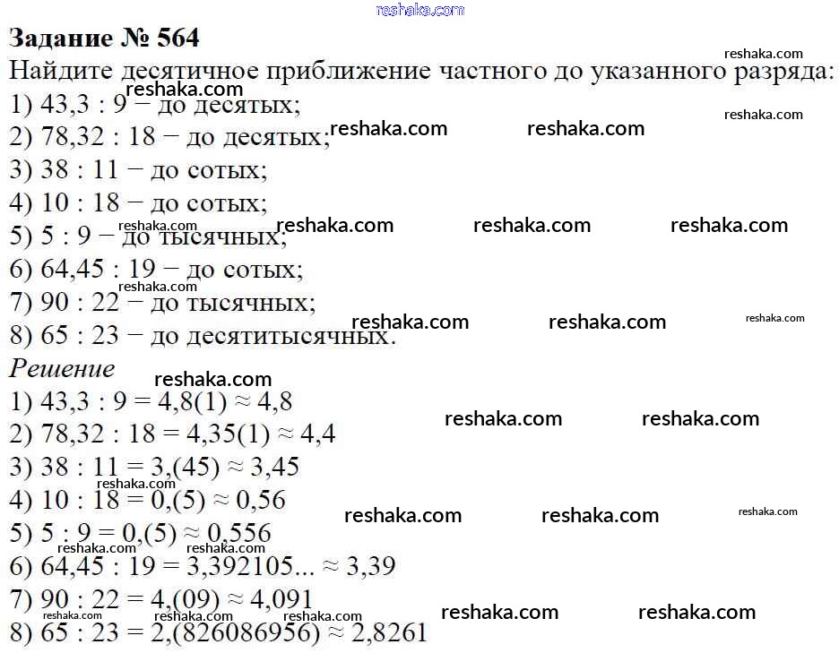 Решака - онлайн ответы Математика Мерзляк, Полонский за 6 класс Учебник ФГОС 2016 - 564