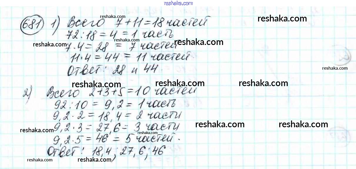 Решака - онлайн ответы Математика Мерзляк, Полонский за 6 класс Учебник ФГОС 2016 - 681
