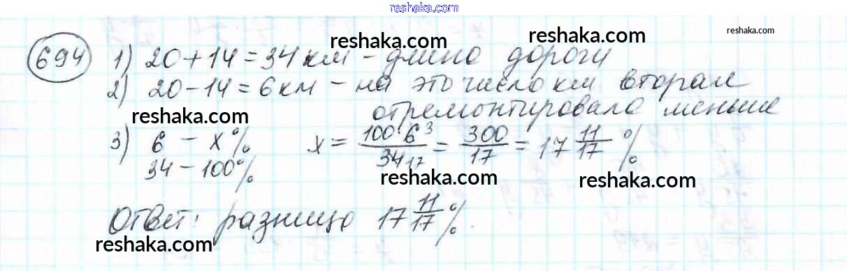 Решака - онлайн ответы Математика Мерзляк, Полонский за 6 класс Учебник ФГОС 2016 - 694