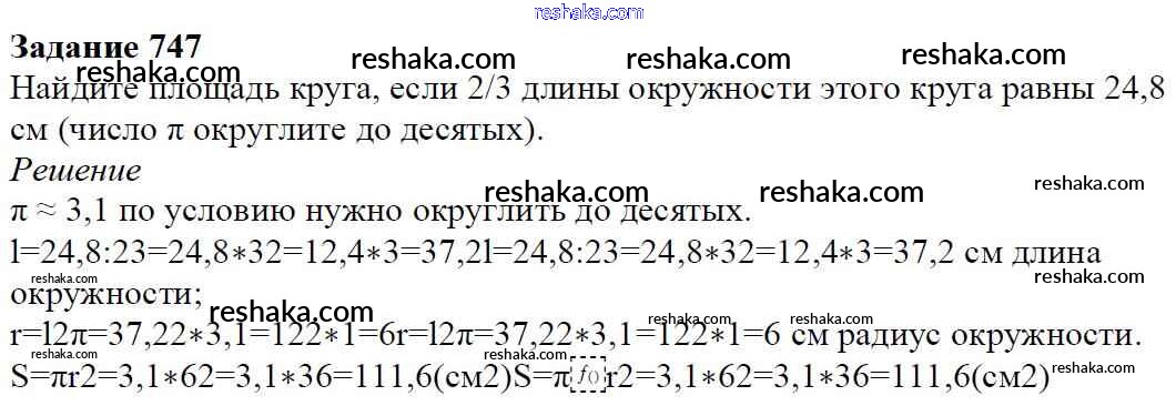 Решака - онлайн ответы Математика Мерзляк, Полонский за 6 класс Учебник ФГОС 2016 - 747
