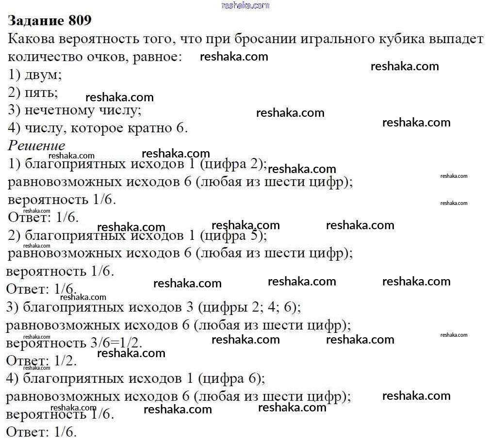 Решака - онлайн ответы Математика Мерзляк, Полонский за 6 класс Учебник ФГОС 2016 - 809