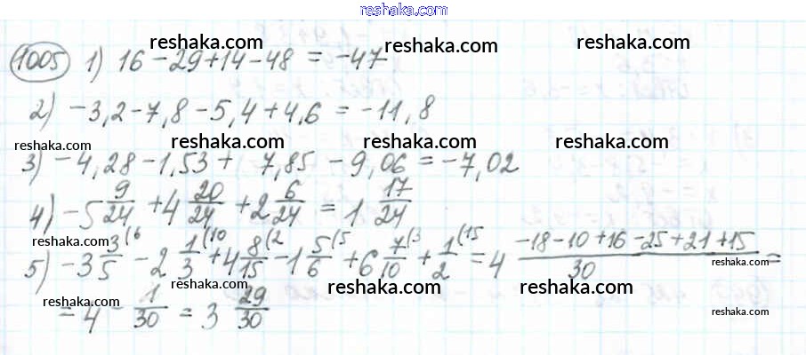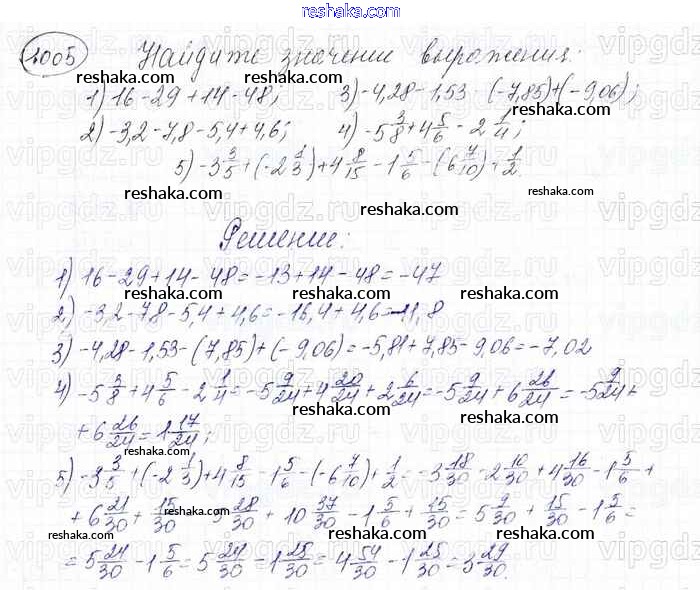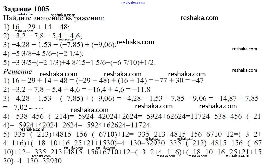 Решака - онлайн ответы Математика Мерзляк, Полонский за 6 класс Учебник ФГОС 2016 - 1005
