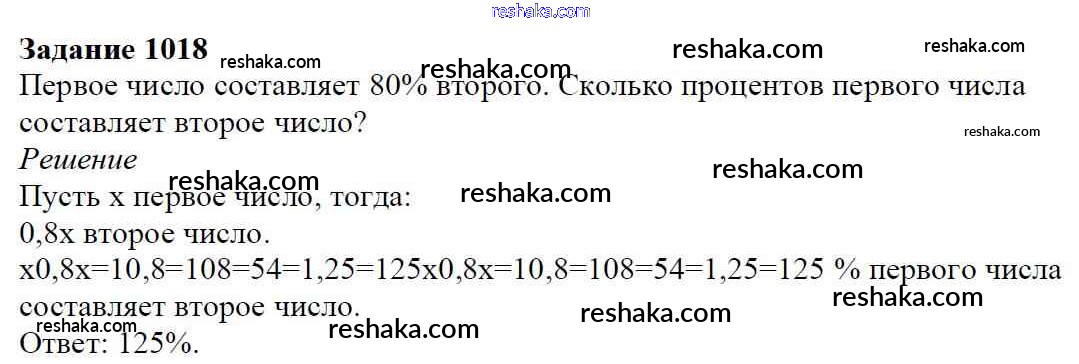Решака - онлайн ответы Математика Мерзляк, Полонский за 6 класс Учебник ФГОС 2016 - 1018