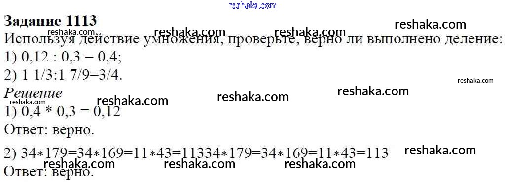 Решака - онлайн ответы Математика Мерзляк, Полонский за 6 класс Учебник ФГОС 2016 - 1113