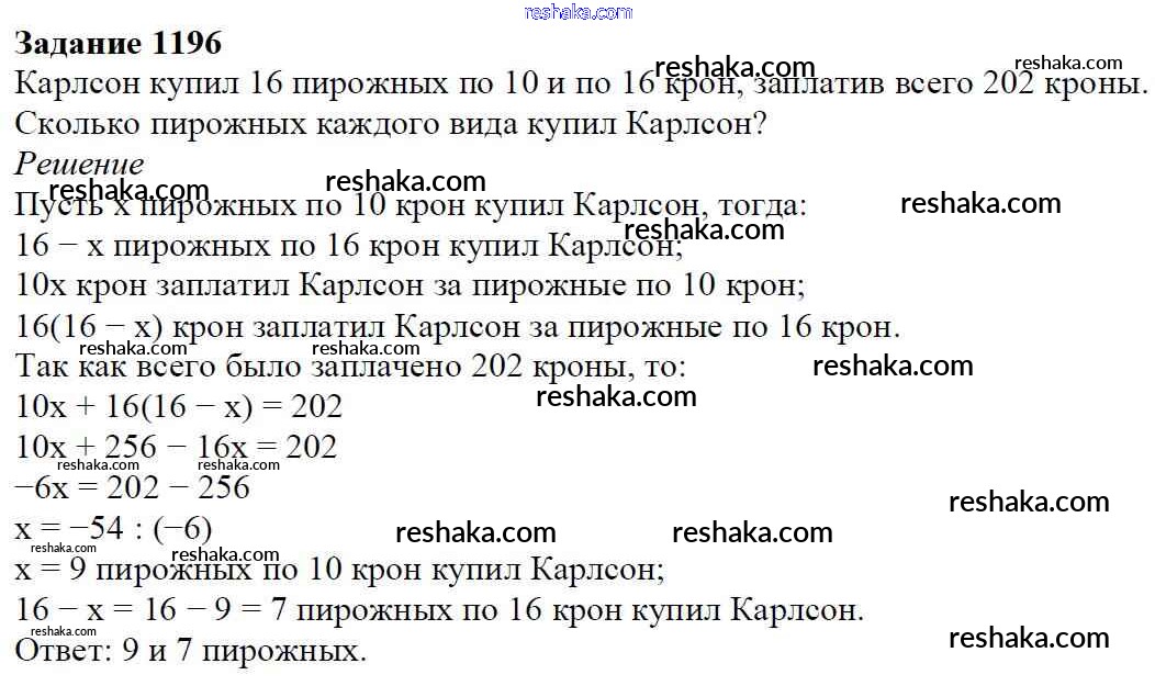 Решака - онлайн ответы Математика Мерзляк, Полонский за 6 класс Учебник ФГОС 2016 - 1196