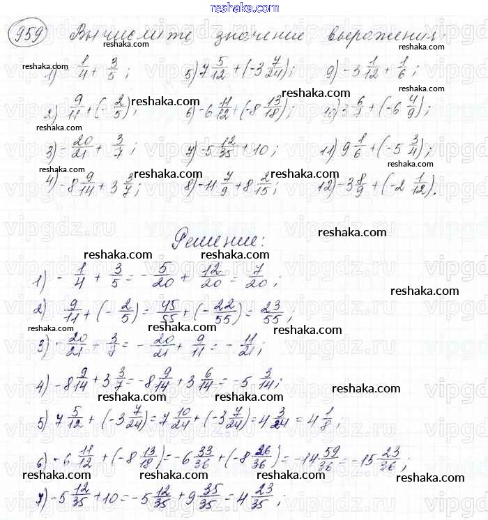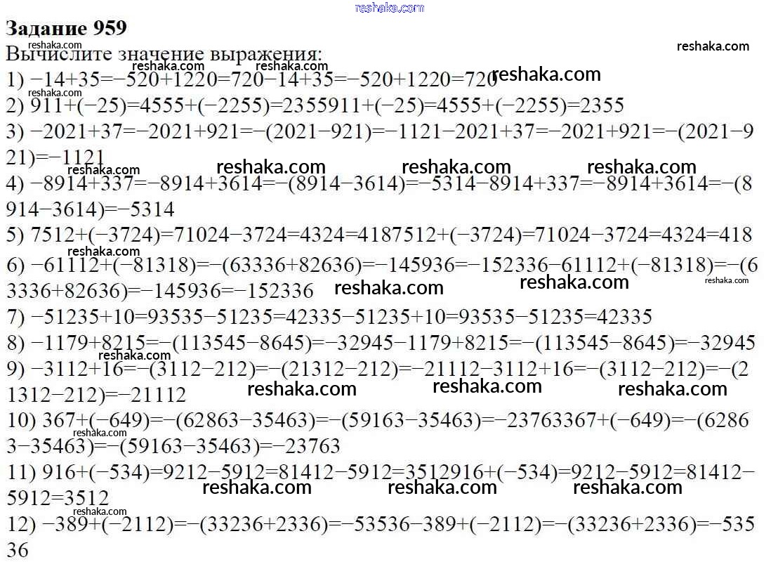 Решака - онлайн ответы Математика Мерзляк, Полонский за 6 класс Учебник ФГОС 2016 - 959