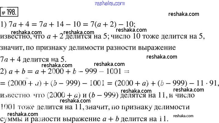 Представляем вам сборники по Математике, с готовыми ответами к Учебнику Муравин школьной программы для учеников шестой класса. Это не просто гдз с ответом, а с подсказками, как верно решить §7. Свойства делимости произведения, суммы и разности чисел 198. Проверяй домашку с умом и получай высший балл!