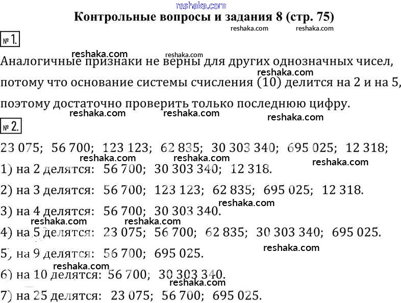 Представляем вам сборники по Математике, с готовыми ответами к Учебнику Муравин школьной программы для учеников шестой класса. Это не просто гдз с ответом, а с подсказками, как верно решить §8. Признаки делимости натуральных чисел Контрольные вопросы и задания. Проверяй домашку с умом и получай высший балл!