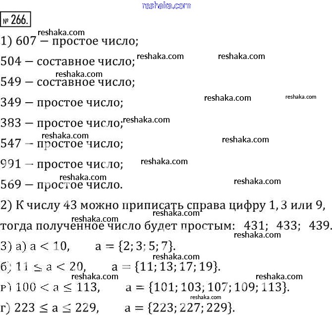 Представляем вам сборники по Математике, с готовыми ответами к Учебнику Муравин школьной программы для учеников шестой класса. Это не просто гдз с ответом, а с подсказками, как верно решить §9. Простые и составные числа 266. Проверяй домашку с умом и получай высший балл!