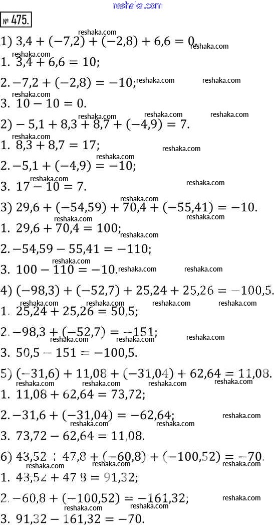 Представляем вам сборники по Математике, с готовыми ответами к Учебнику Муравин школьной программы для учеников шестой класса. Это не просто гдз с ответом, а с подсказками, как верно решить §15. Сложение и вычитание чисел 475. Проверяй домашку с умом и получай высший балл!
