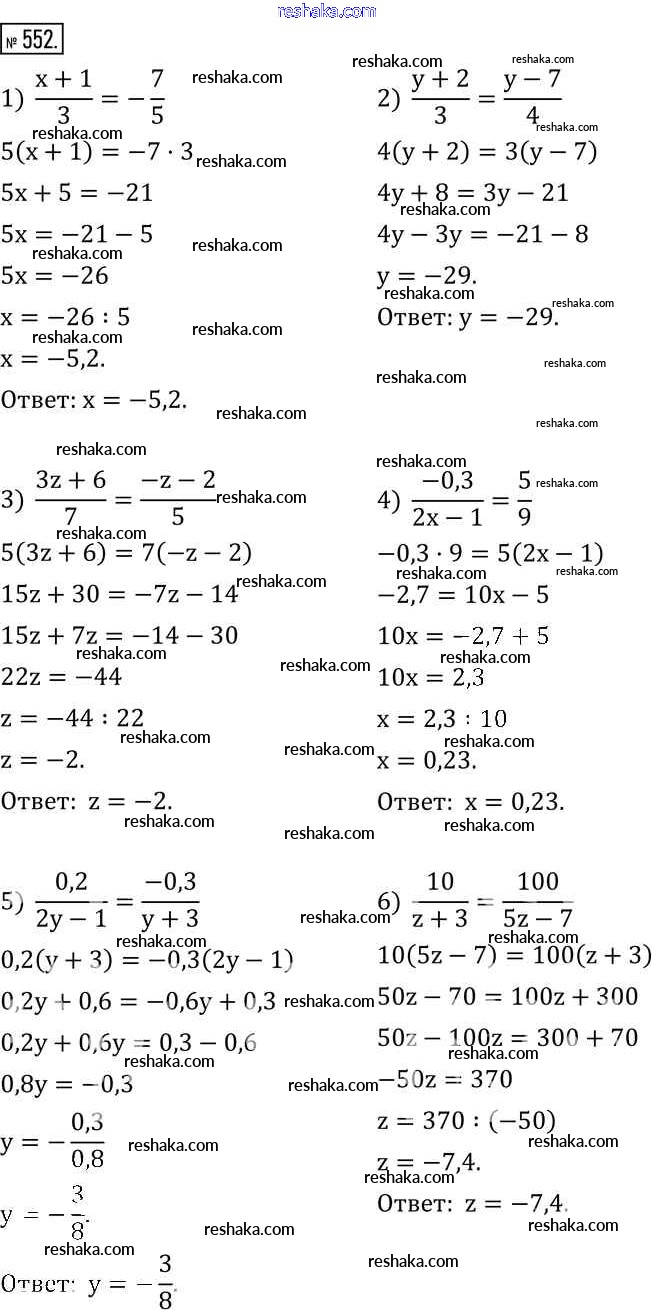 Представляем вам сборники по Математике, с готовыми ответами к Учебнику Муравин школьной программы для учеников шестой класса. Это не просто гдз с ответом, а с подсказками, как верно решить §18. Решение уравнений 552. Проверяй домашку с умом и получай высший балл!