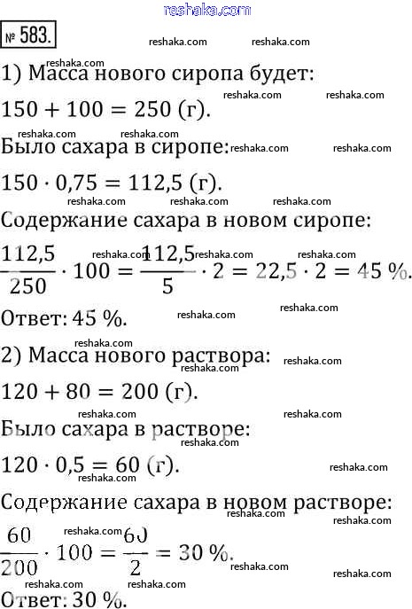 Представляем вам сборники по Математике, с готовыми ответами к Учебнику Муравин школьной программы для учеников шестой класса. Это не просто гдз с ответом, а с подсказками, как верно решить §19. Решение задач на проценты 583. Проверяй домашку с умом и получай высший балл!