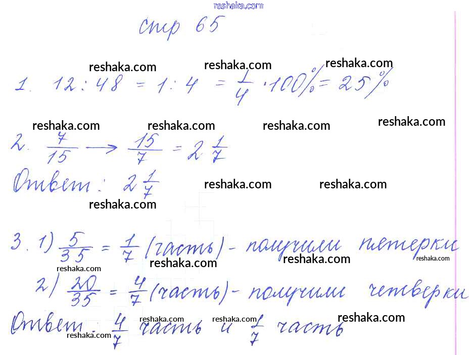 Решака - онлайн ответы Математика Рудницкая за 6 класс Рабочая тетрадь ФГОС 2013 - 65