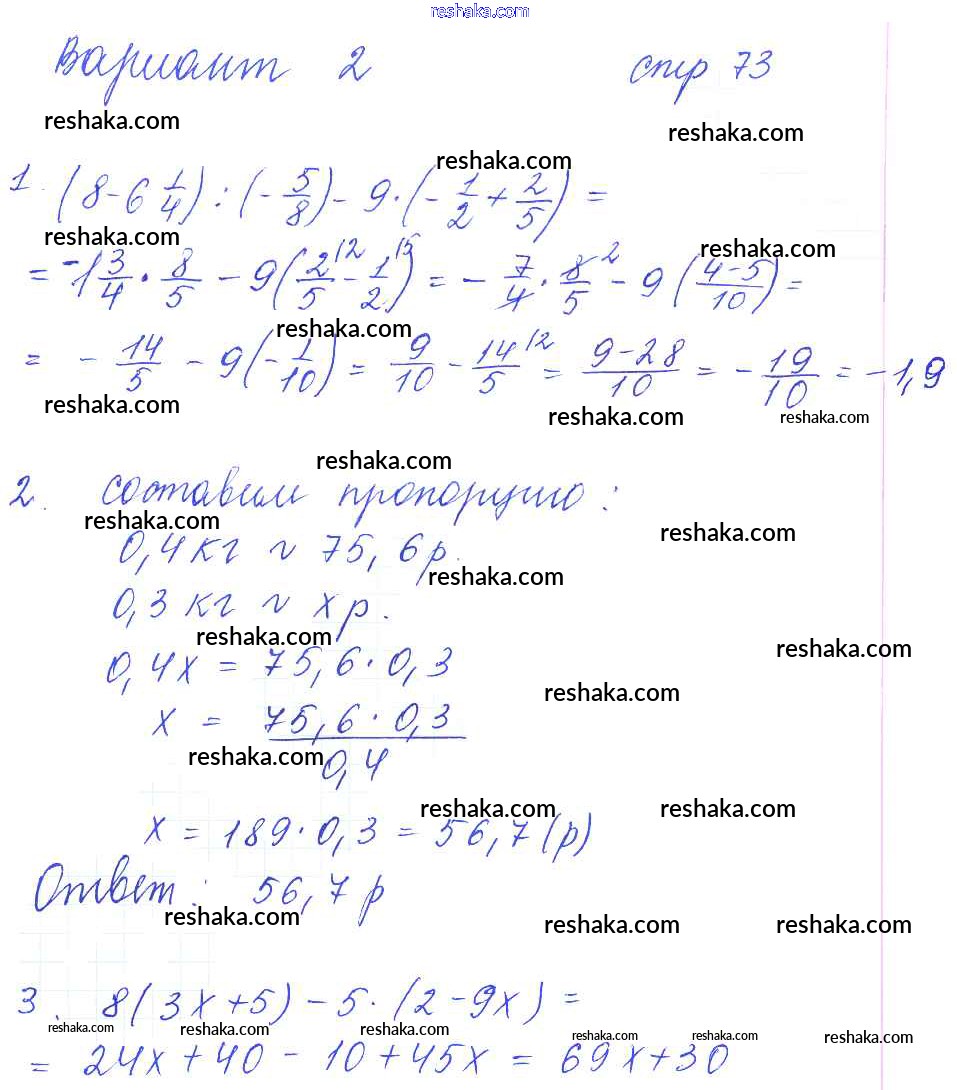 Решака - онлайн ответы Математика Рудницкая за 6 класс Рабочая тетрадь ФГОС 2013 - 73