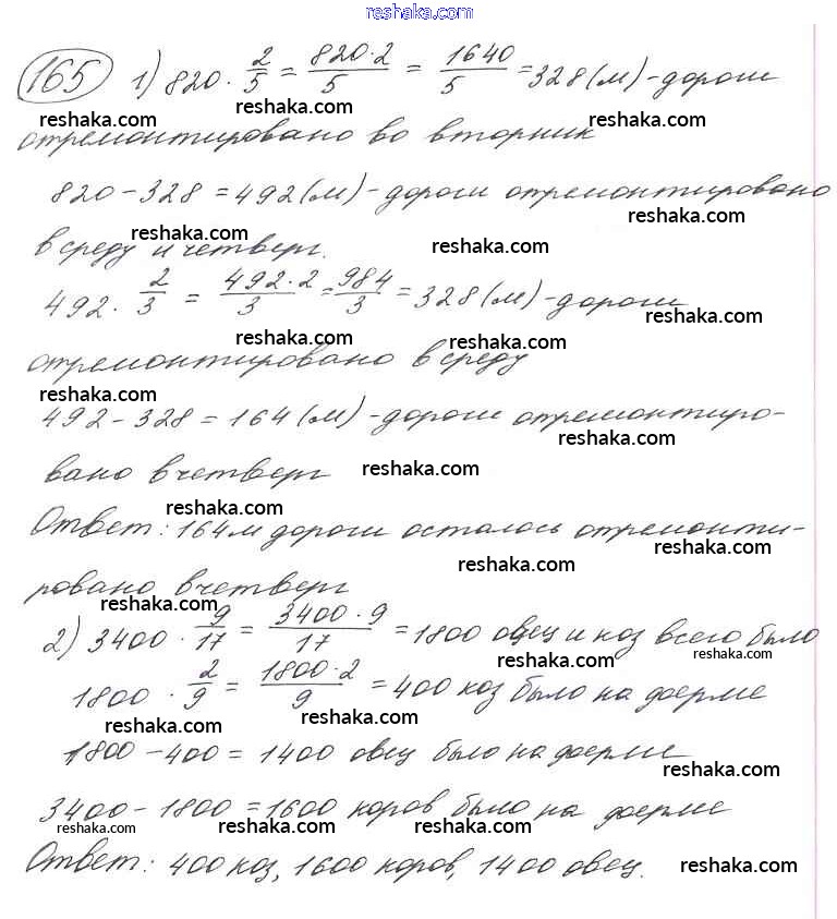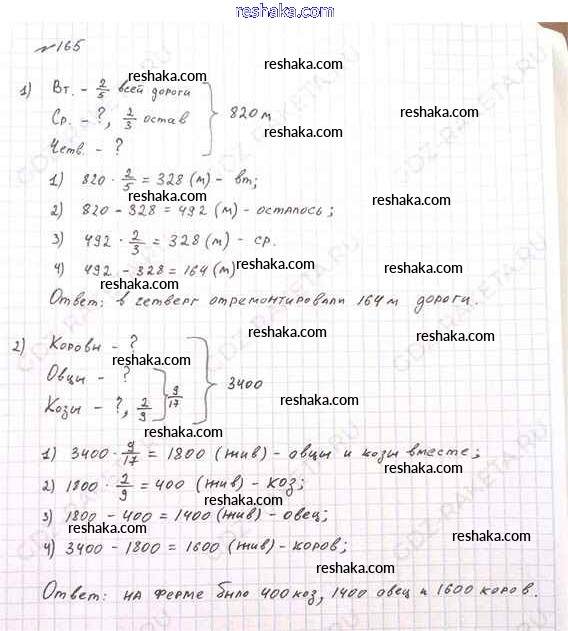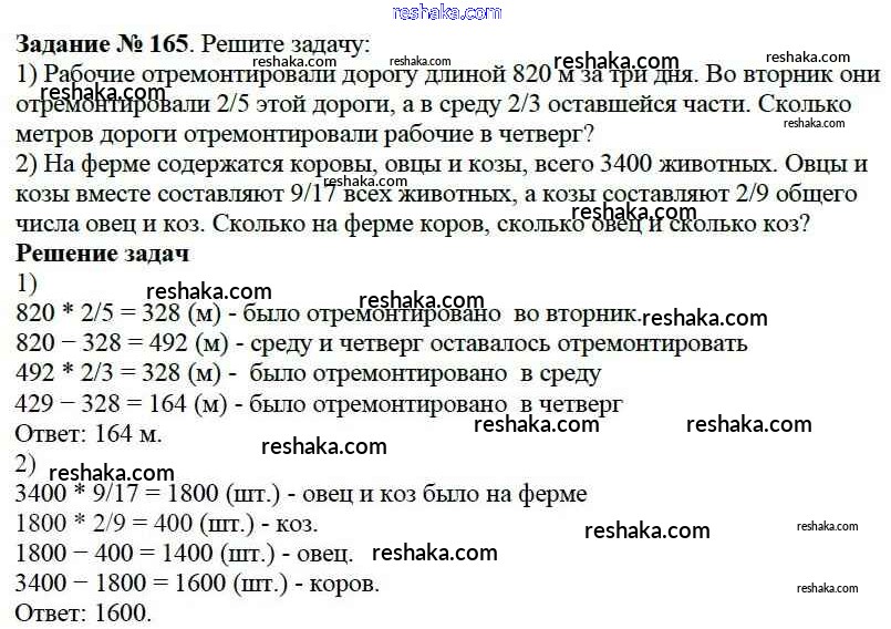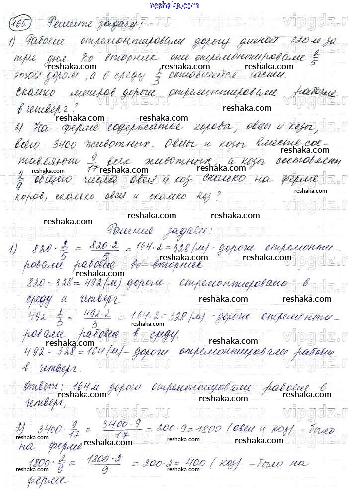 Решака - онлайн ответы Математика Виленкин, Жохов за 6 класс Учебник ФГОС 2014 - 165