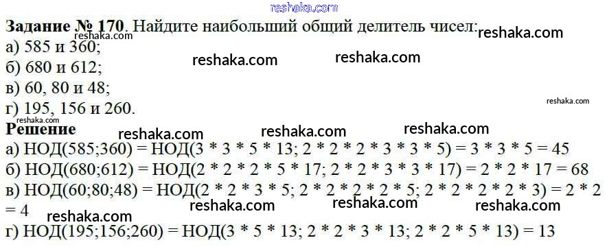 Решака - онлайн ответы Математика Виленкин, Жохов за 6 класс Учебник ФГОС 2014 - 170
