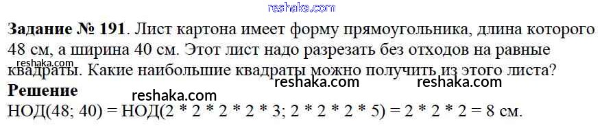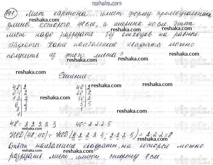 Решака - онлайн ответы Математика Виленкин, Жохов за 6 класс Учебник ФГОС 2014 - 191