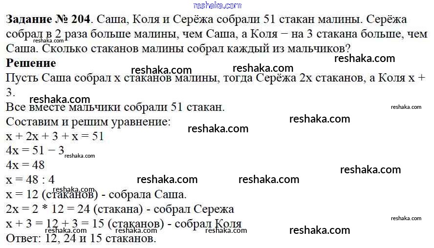 Решака - онлайн ответы Математика Виленкин, Жохов за 6 класс Учебник ФГОС 2014 - 204