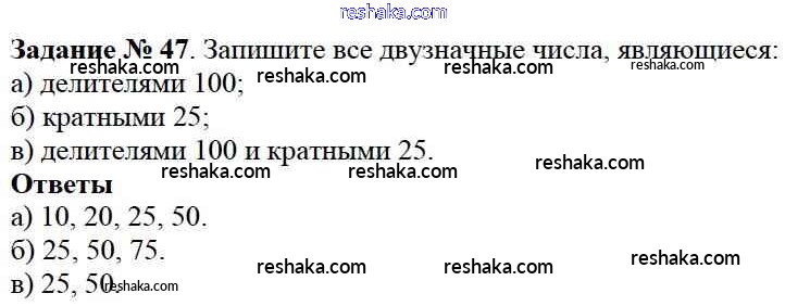 Представляем вам сборники по Математике, с готовыми ответами к Учебнику Виленкин школьной программы для учеников шестой класса. Это не просто гдз с ответом, а с подсказками, как верно решить §1. Делимость чисел Глава 1 47. Проверяй домашку с умом и получай высший балл!