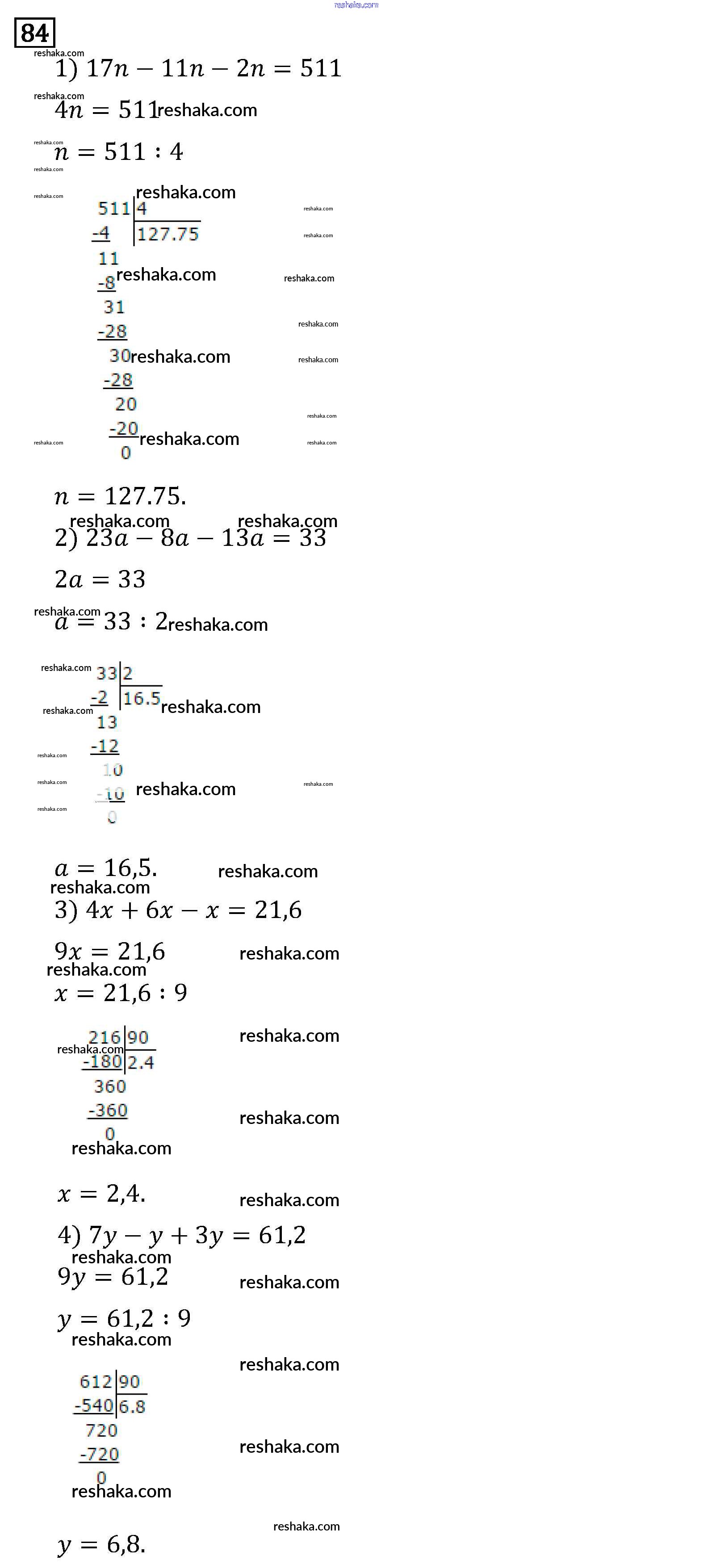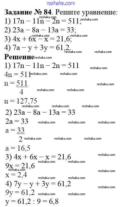 Решака - онлайн ответы Математика Виленкин, Жохов за 6 класс Учебник ФГОС 2014 - 84