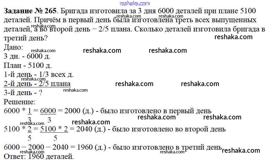 Решака - онлайн ответы Математика Виленкин, Жохов за 6 класс Учебник ФГОС 2014 - 265