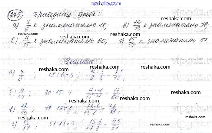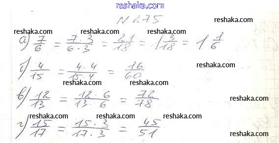 Представляем вам сборники по Математике, с готовыми ответами к Учебнику Виленкин школьной программы для учеников шестой класса. Это не просто гдз с ответом, а с подсказками, как верно решить §2. Сложение и вычитание дробей с разными знаменателями Глава 1 275. Проверяй домашку с умом и получай высший балл!