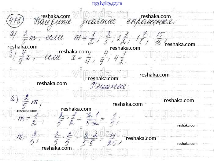 Представляем вам сборники по Математике, с готовыми ответами к Учебнику Виленкин школьной программы для учеников шестой класса. Это не просто гдз с ответом, а с подсказками, как верно решить §3. Умножение и деление обыкновенных дробей Глава 1 473. Проверяй домашку с умом и получай высший балл!