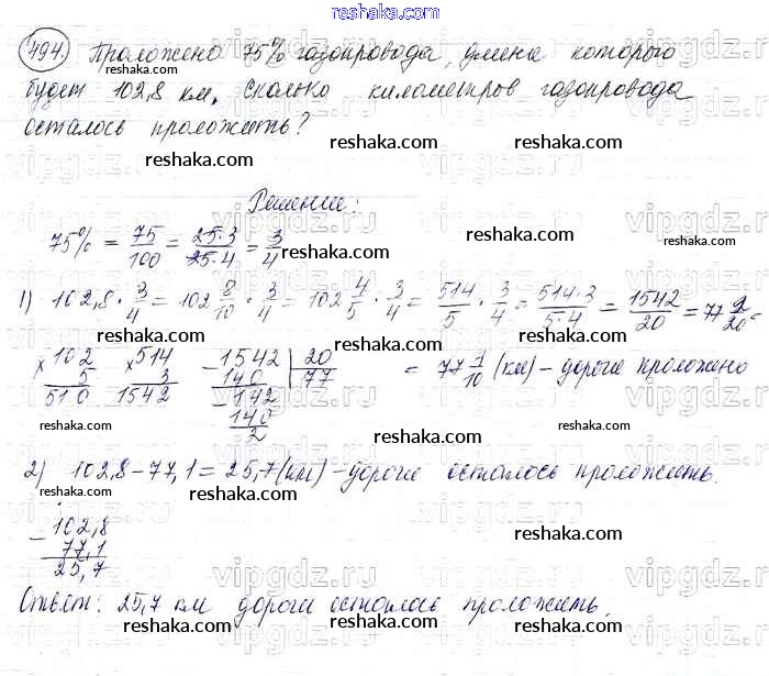 Решака - онлайн ответы Математика Виленкин, Жохов за 6 класс Учебник ФГОС 2014 - 494