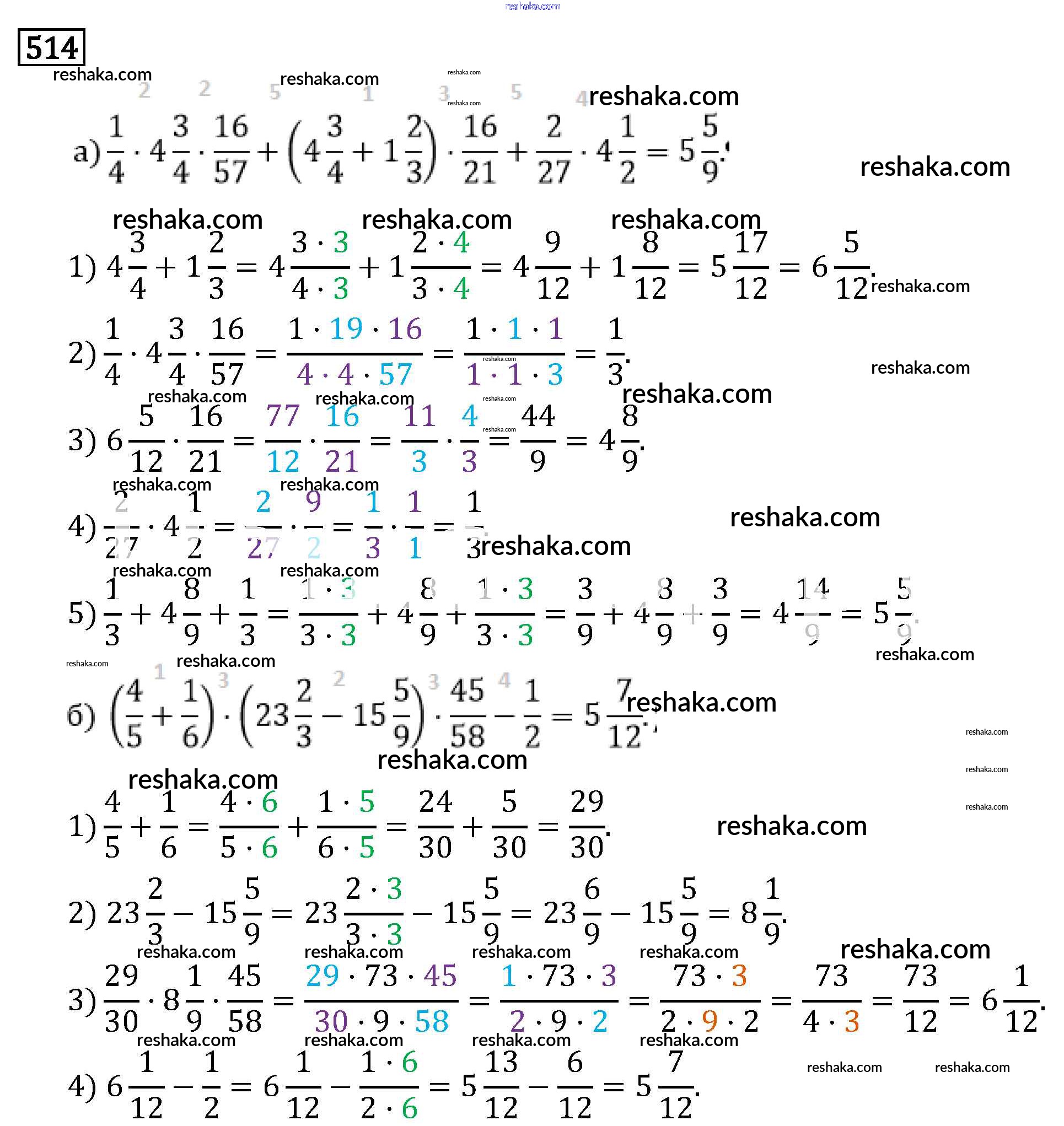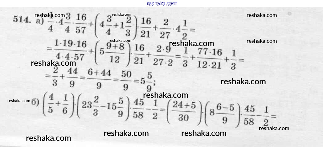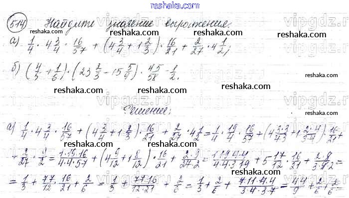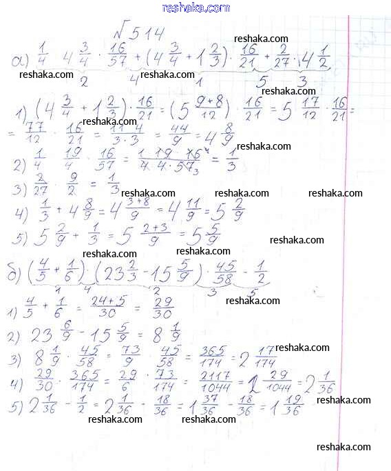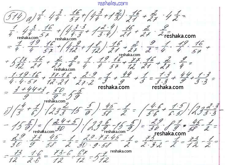 Решака - онлайн ответы Математика Виленкин, Жохов за 6 класс Учебник ФГОС 2014 - 514