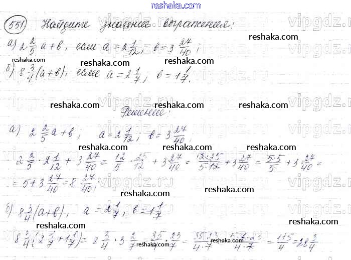 Решака - онлайн ответы Математика Виленкин, Жохов за 6 класс Учебник ФГОС 2014 - 551
