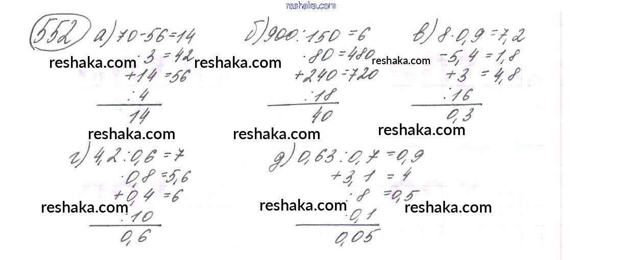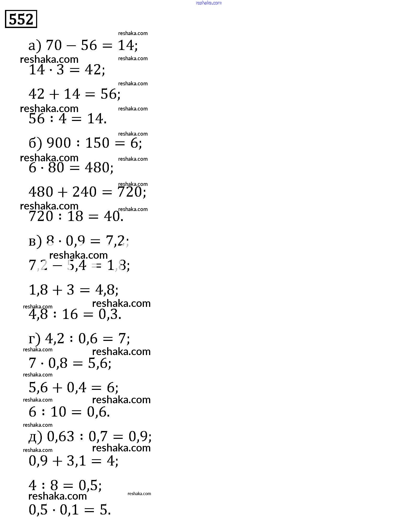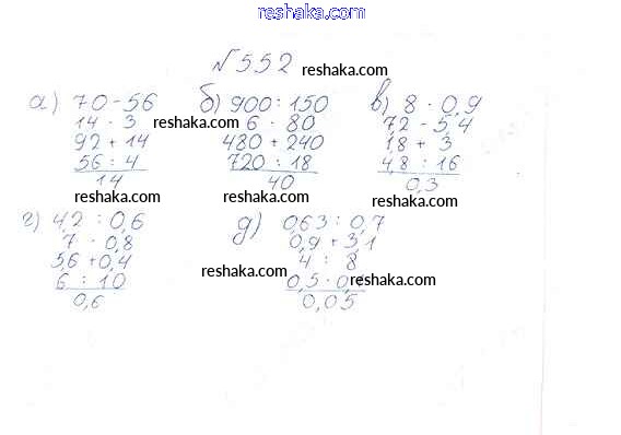 Решака - онлайн ответы Математика Виленкин, Жохов за 6 класс Учебник ФГОС 2014 - 552