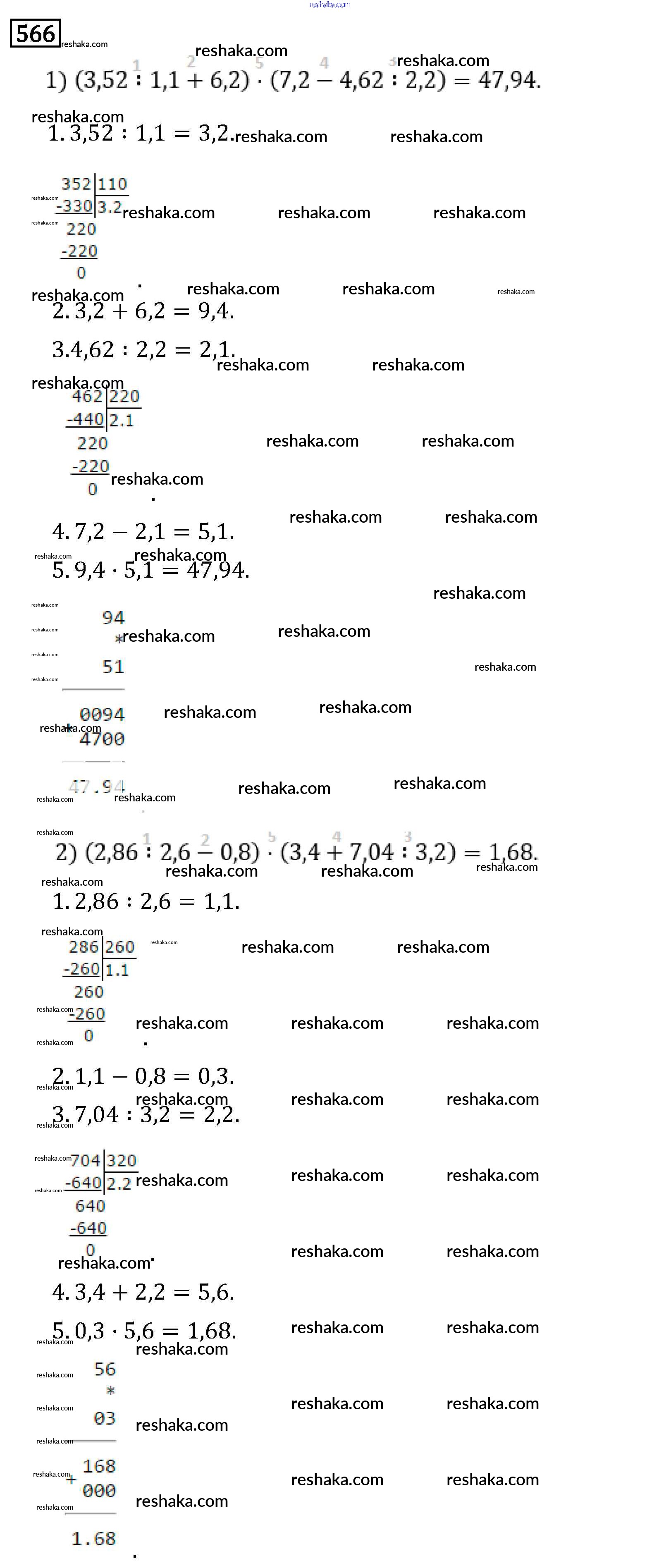 Решака - онлайн ответы Математика Виленкин, Жохов за 6 класс Учебник ФГОС 2014 - 566