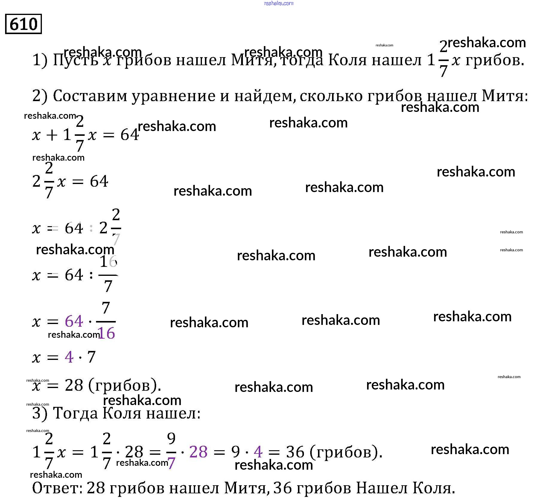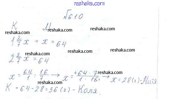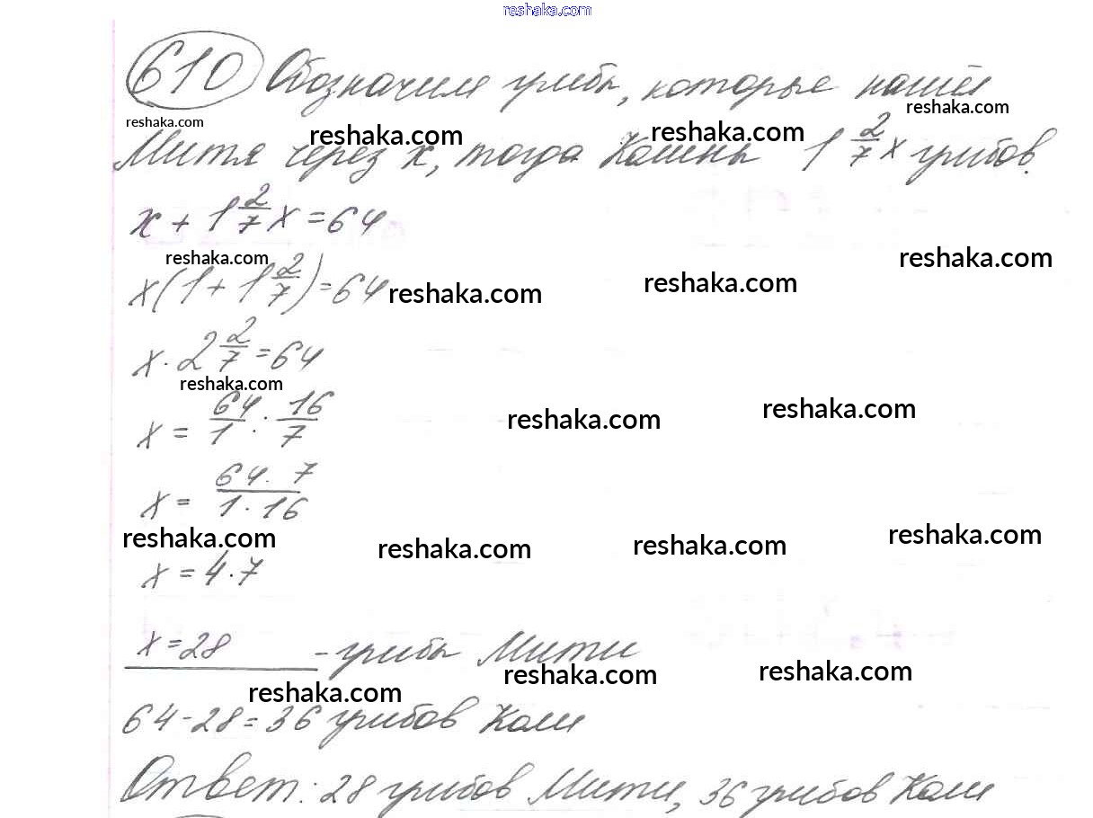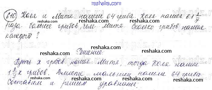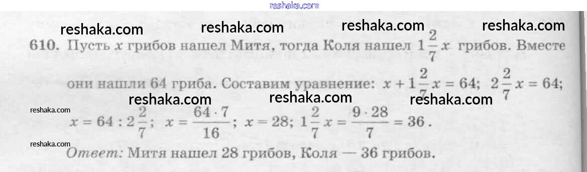 Решака - онлайн ответы Математика Виленкин, Жохов за 6 класс Учебник ФГОС 2014 - 610