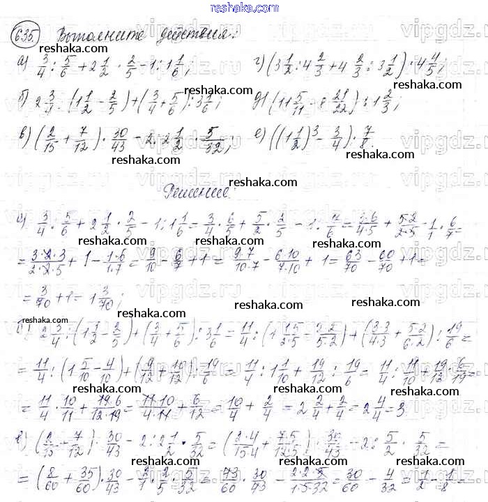 Представляем вам сборники по Математике, с готовыми ответами к Учебнику Виленкин школьной программы для учеников шестой класса. Это не просто гдз с ответом, а с подсказками, как верно решить §3. Умножение и деление обыкновенных дробей Глава 1 635. Проверяй домашку с умом и получай высший балл!