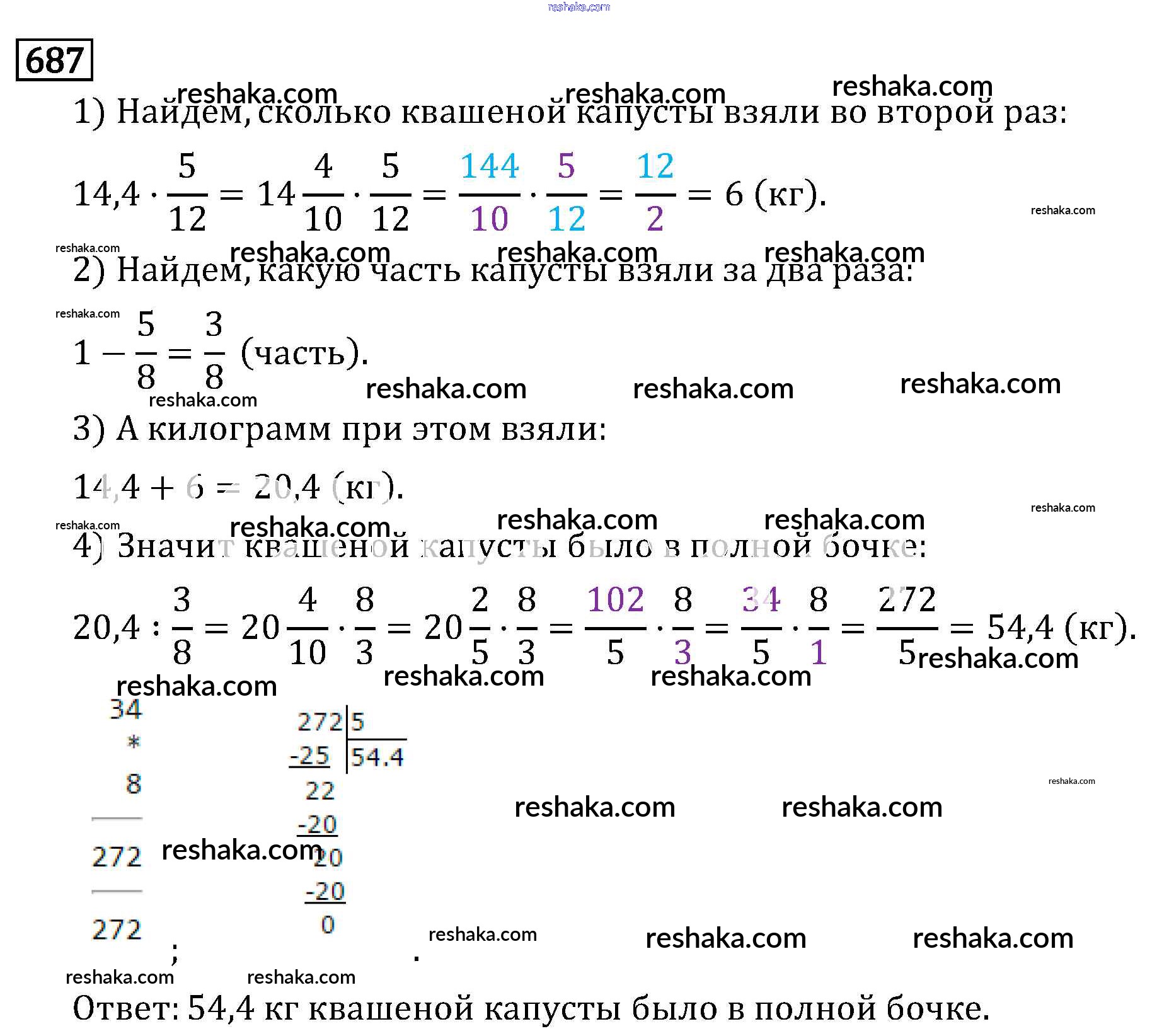Решака - онлайн ответы Математика Виленкин, Жохов за 6 класс Учебник ФГОС 2014 - 687