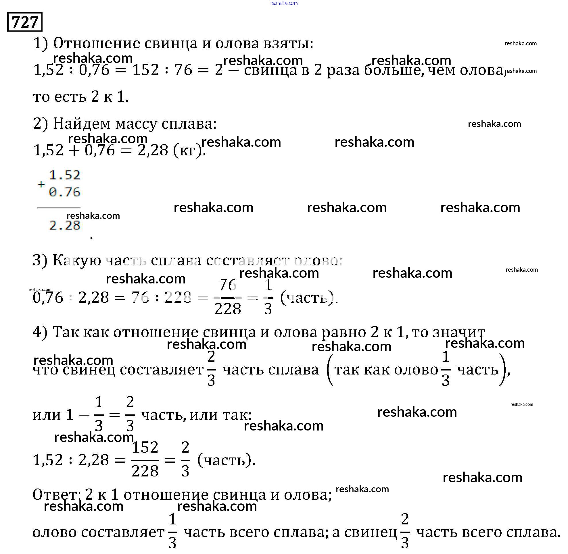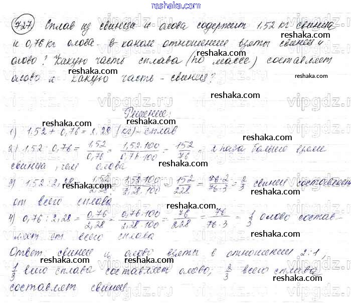Решака - онлайн ответы Математика Виленкин, Жохов за 6 класс Учебник ФГОС 2014 - 727