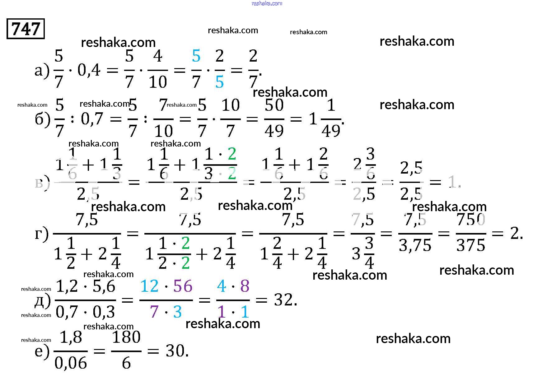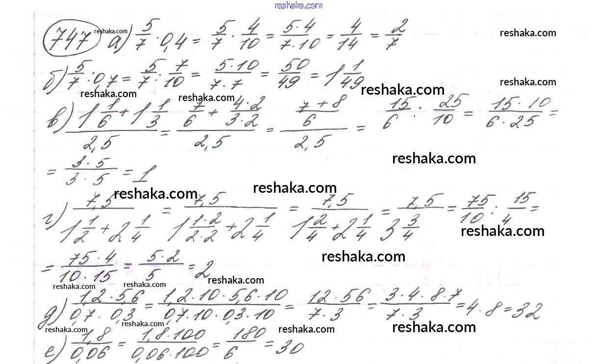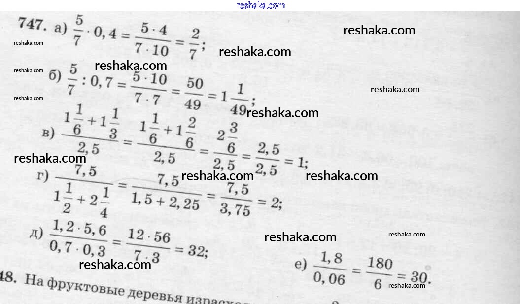 Решака - онлайн ответы Математика Виленкин, Жохов за 6 класс Учебник ФГОС 2014 - 747
