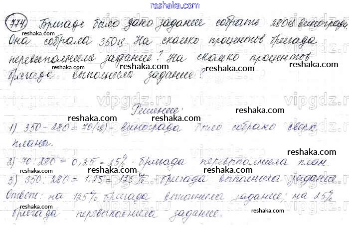 Решака - онлайн ответы Математика Виленкин, Жохов за 6 класс Учебник ФГОС 2014 - 774