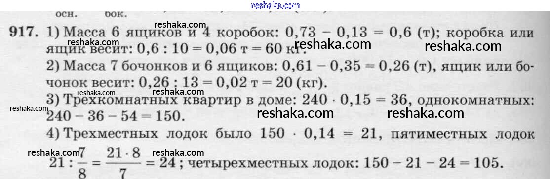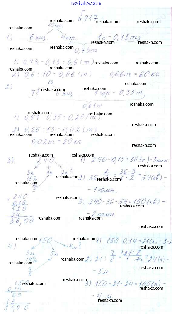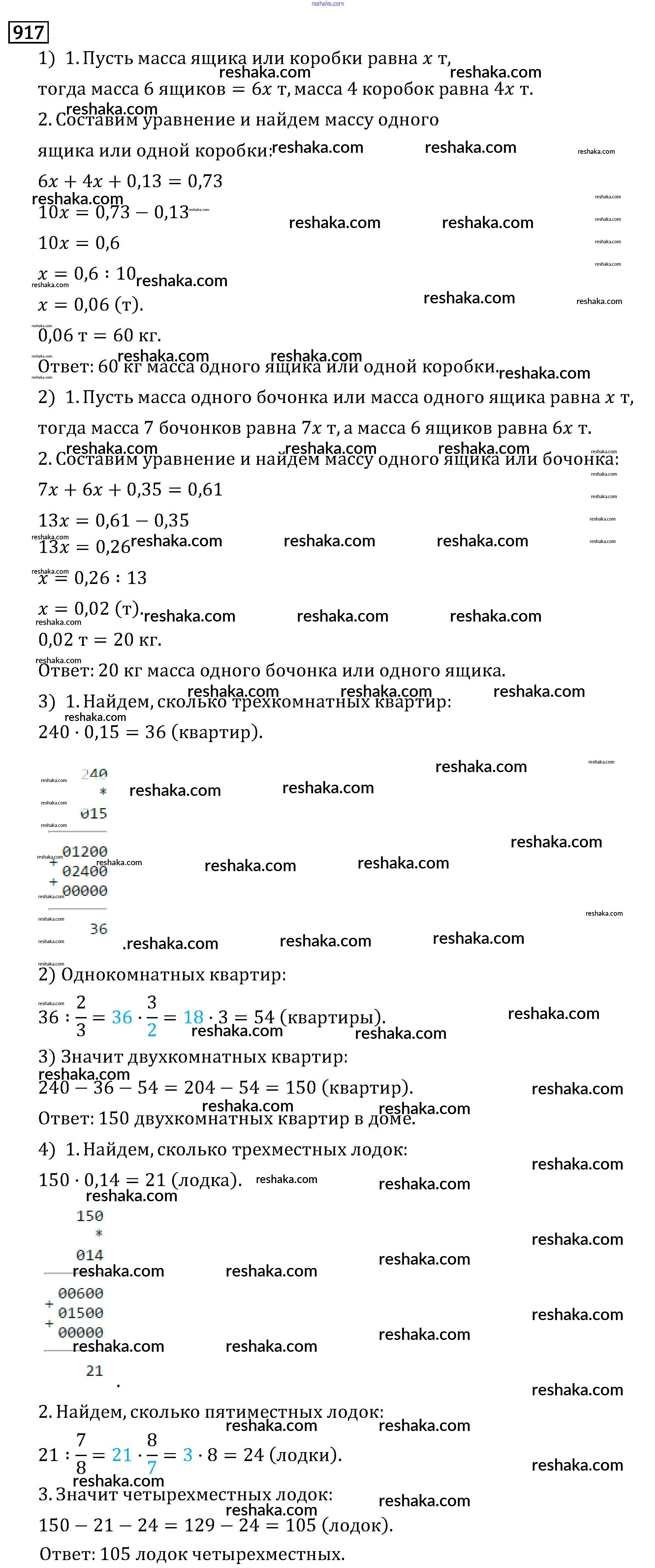Решака - онлайн ответы Математика Виленкин, Жохов за 6 класс Учебник ФГОС 2014 - 917
