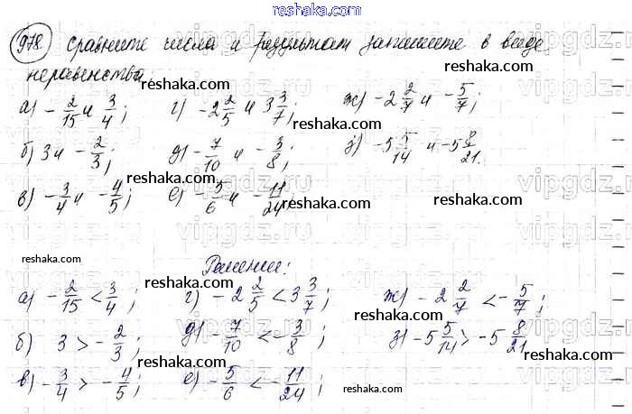 Решака - онлайн ответы Математика Виленкин, Жохов за 6 класс Учебник ФГОС 2014 - 978