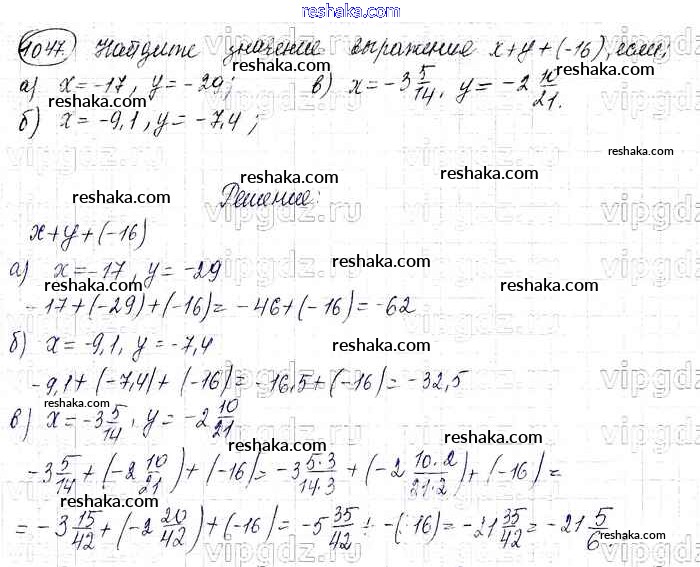 Представляем вам сборники по Математике, с готовыми ответами к Учебнику Виленкин школьной программы для учеников шестой класса. Это не просто гдз с ответом, а с подсказками, как верно решить §6. Сложение и вычитание положительных и отрицательных чисел Глава 2 1047. Проверяй домашку с умом и получай высший балл!