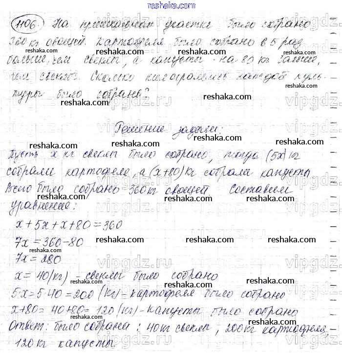 Решака - онлайн ответы Математика Виленкин, Жохов за 6 класс Учебник ФГОС 2014 - 1106