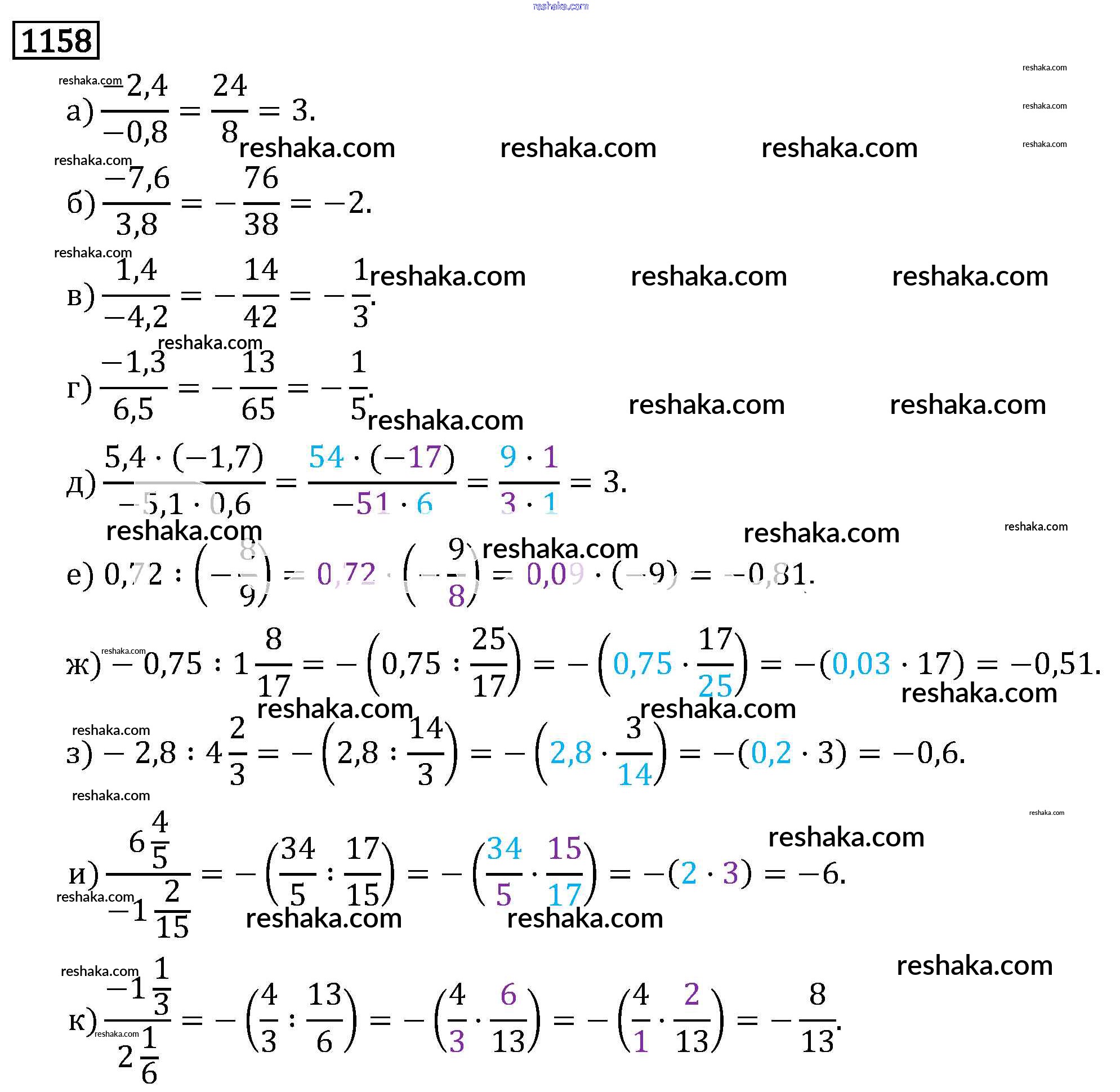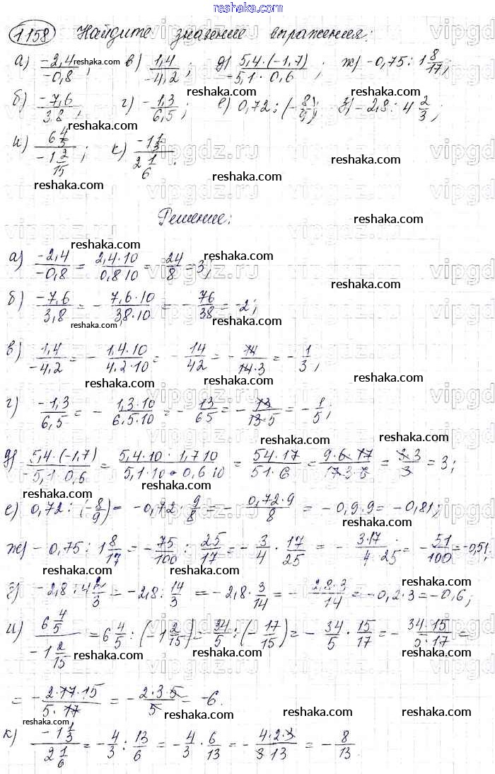 Решака - онлайн ответы Математика Виленкин, Жохов за 6 класс Учебник ФГОС 2014 - 1158