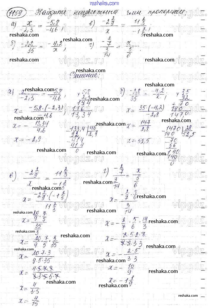 Решака - онлайн ответы Математика Виленкин, Жохов за 6 класс Учебник ФГОС 2014 - 1159
