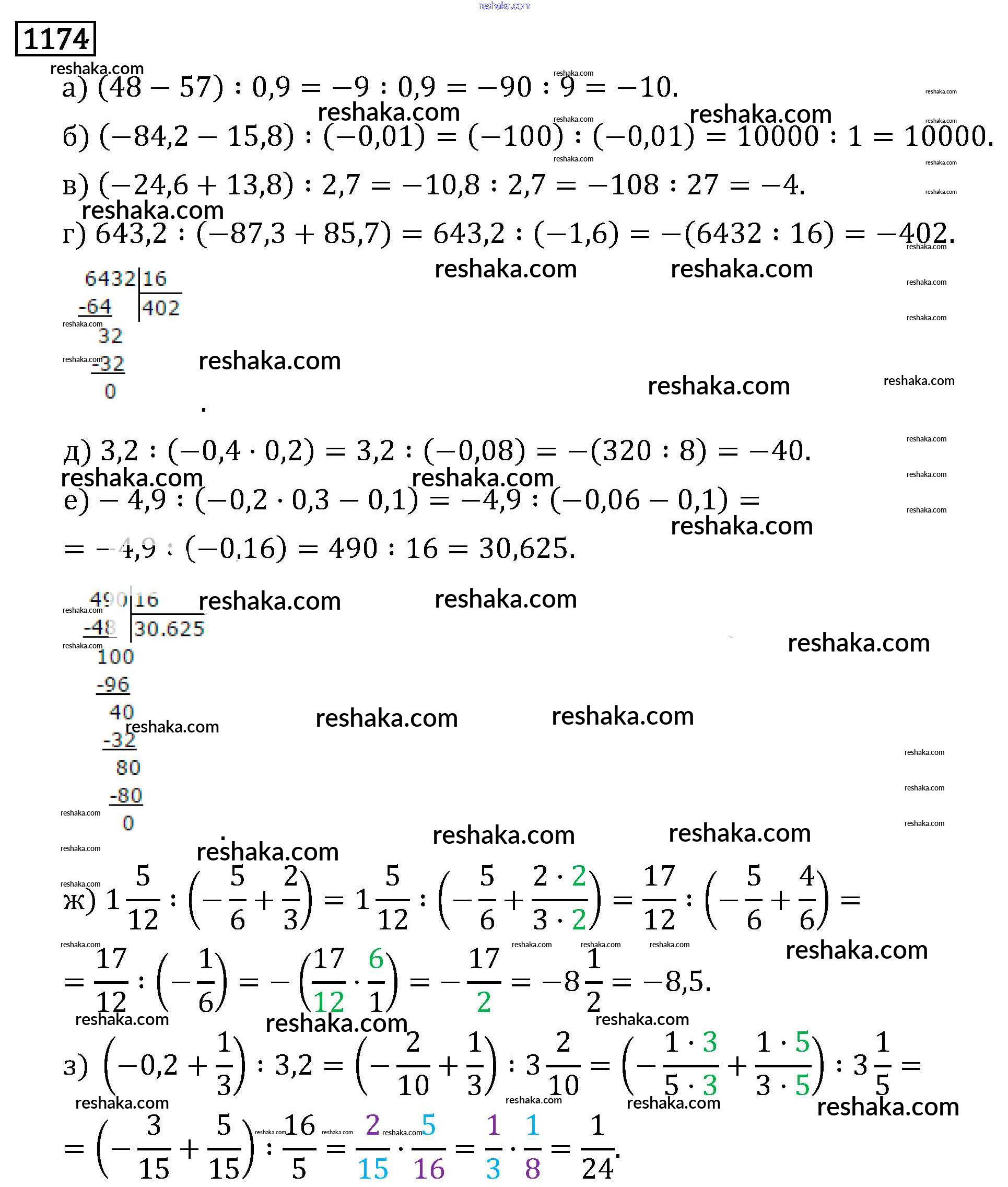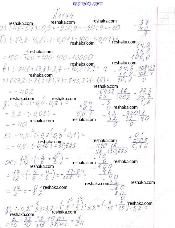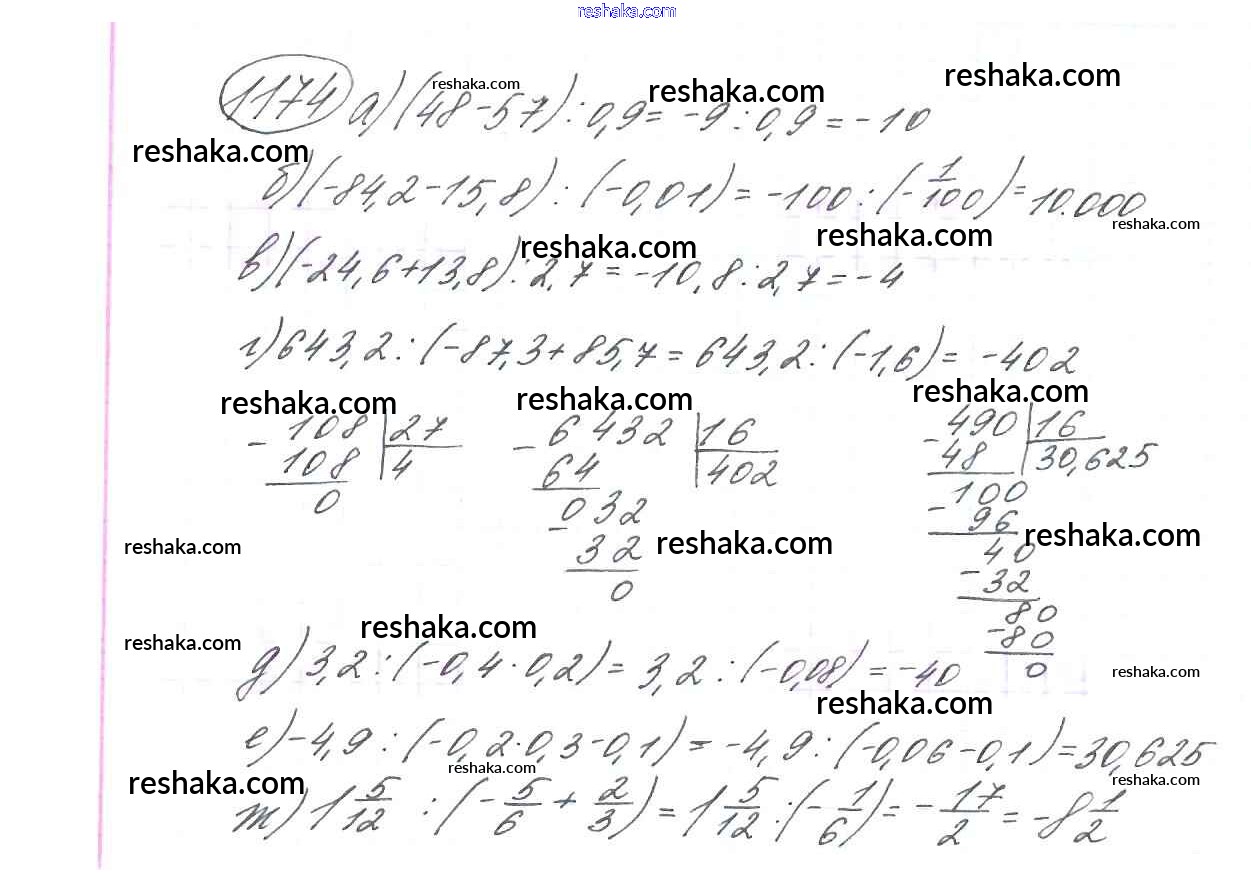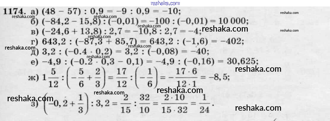 Решака - онлайн ответы Математика Виленкин, Жохов за 6 класс Учебник ФГОС 2014 - 1174