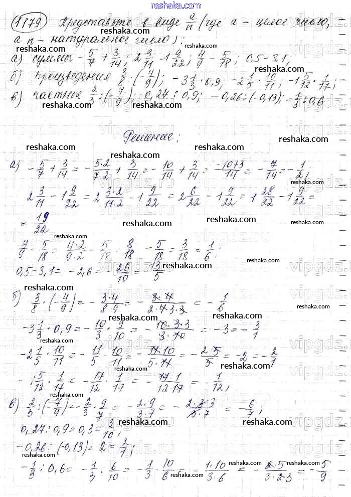 Решака - онлайн ответы Математика Виленкин, Жохов за 6 класс Учебник ФГОС 2014 - 1179