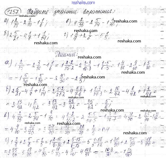 Решака - онлайн ответы Математика Виленкин, Жохов за 6 класс Учебник ФГОС 2014 - 1257