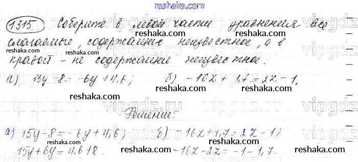 Представляем вам сборники по Математике, с готовыми ответами к Учебнику Виленкин школьной программы для учеников шестой класса. Это не просто гдз с ответом, а с подсказками, как верно решить §8. Решение уравнений Глава 2 1315. Проверяй домашку с умом и получай высший балл!