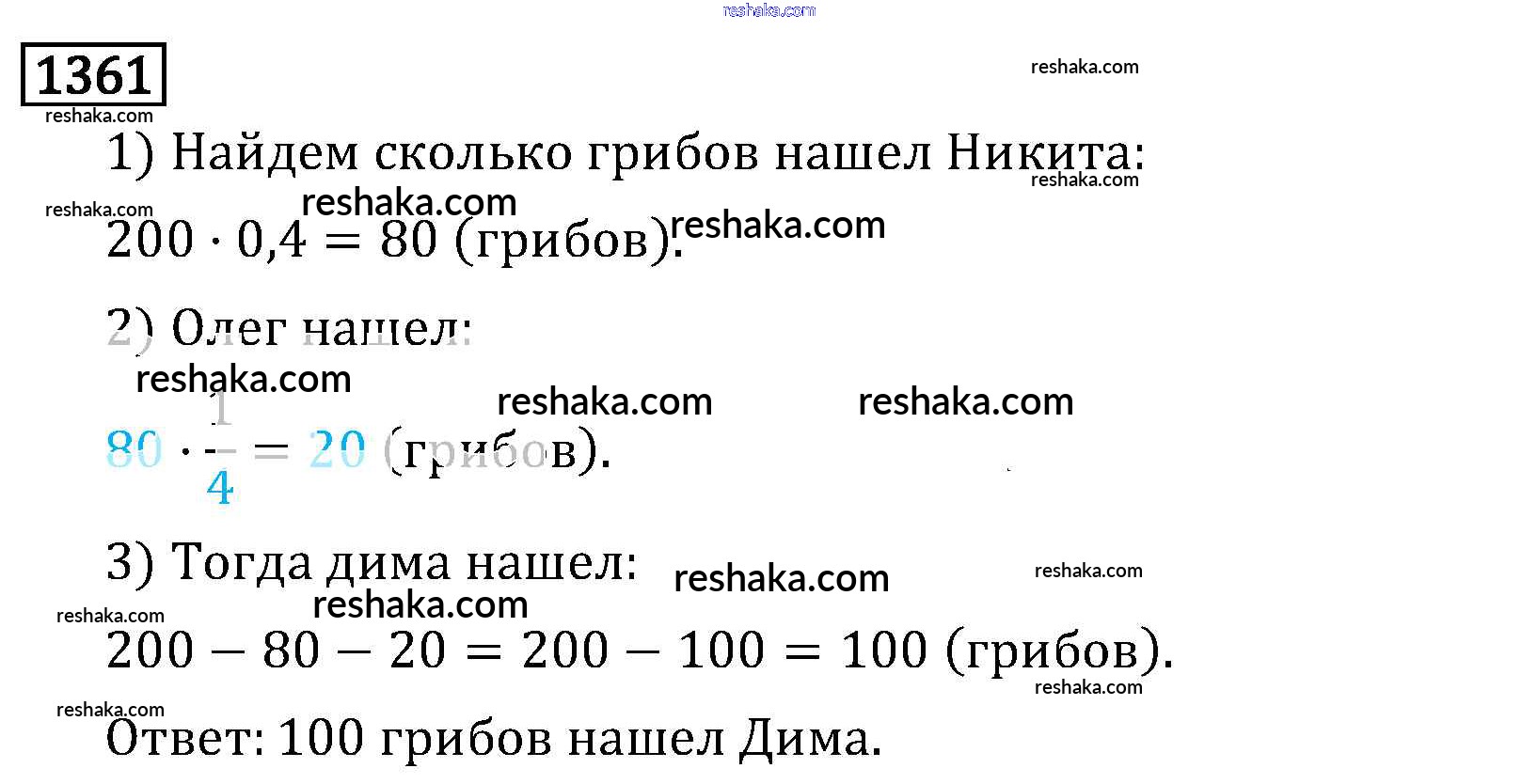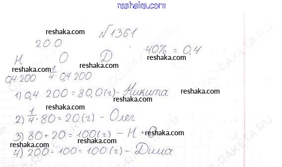 Решака - онлайн ответы Математика Виленкин, Жохов за 6 класс Учебник ФГОС 2014 - 1361