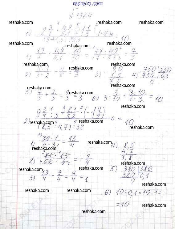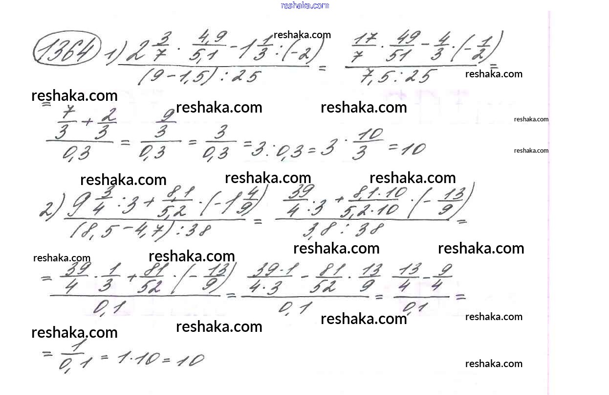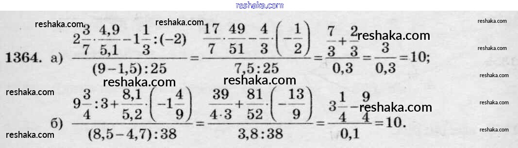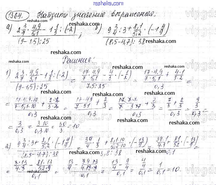 Решака - онлайн ответы Математика Виленкин, Жохов за 6 класс Учебник ФГОС 2014 - 1364